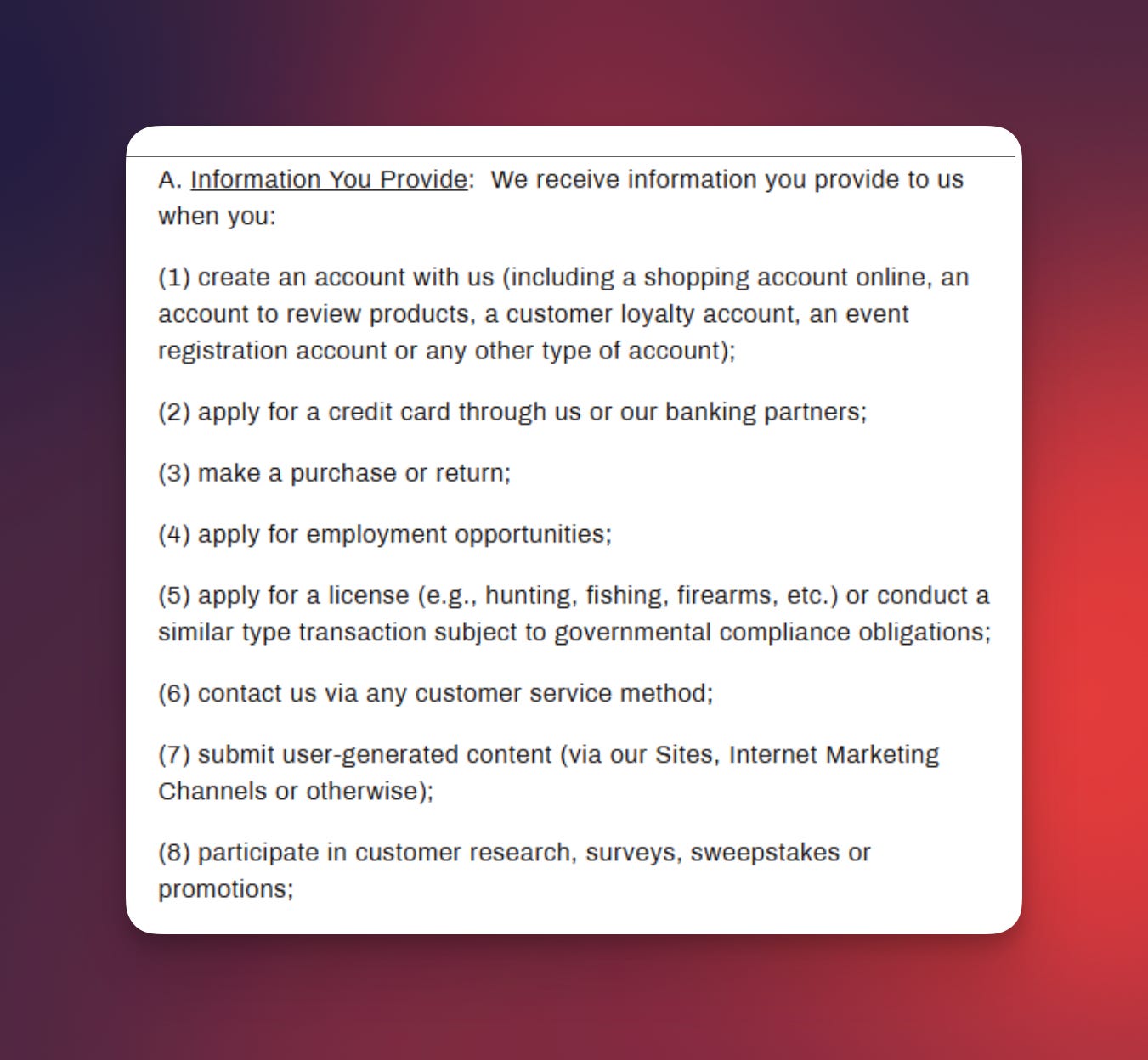Here’s some of the info Dick’s says it gathers about its customers 👇