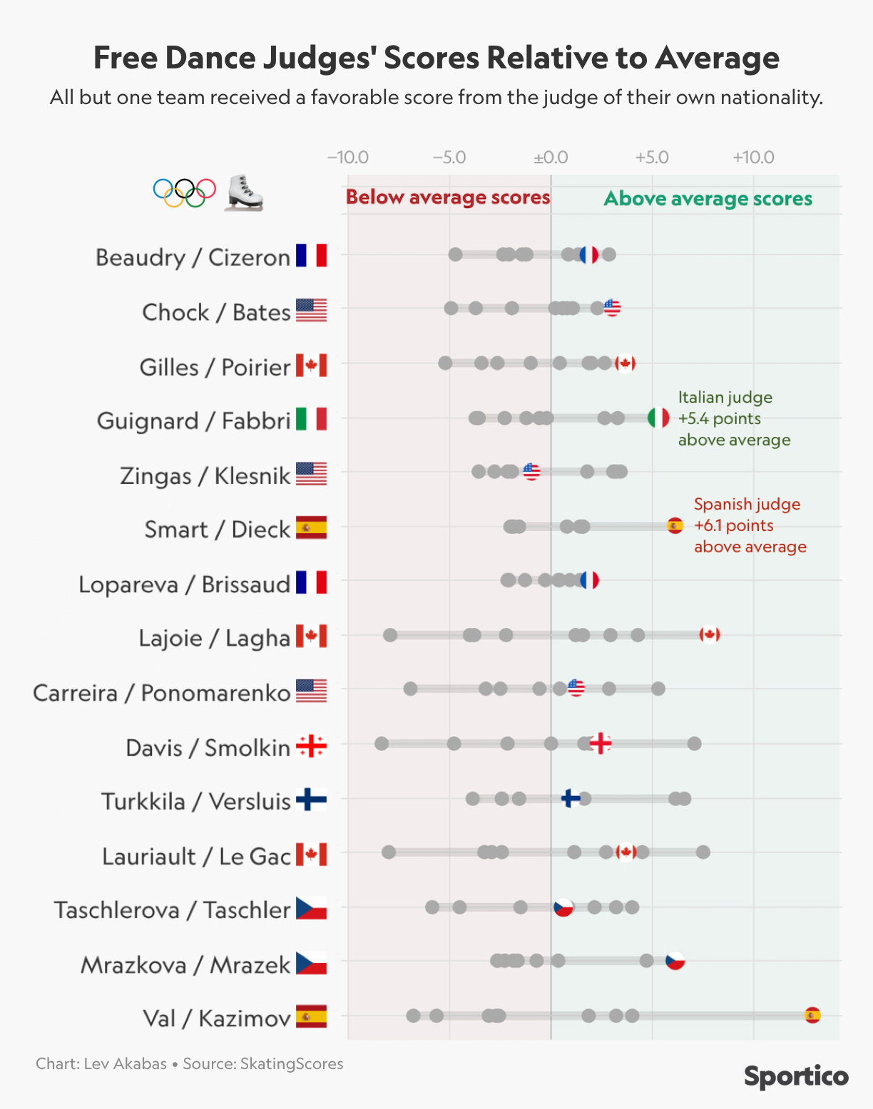 Sportico Story of the Week ⛸️: Here are some insane stats about bias in figure skating judging, via Lev.
