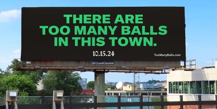 Story of the Week ⚽️⚽️⚽️: I genuinely feel bad for everyone involved in unveiling the new name/colors for the NWSL expansion team in Boston. BOS Nation FC and its “Too Many Balls” campaign were roundly mocked on the internet this week. Worse, one of the league’s non-binary players called the campaign transphobic, leading to videos being scrubbed, merch being taken down, and an apology from the team. If there’s a lesson here, I’ll offer this: Don’t use “GOAT balls” as a euphemism in your women’s soccer ad campaign.