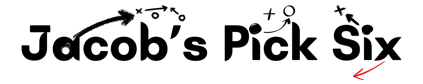 Now turning it over to Jacob for his Pick Six, including baseball on a race track and iPhones in the Premier League…
