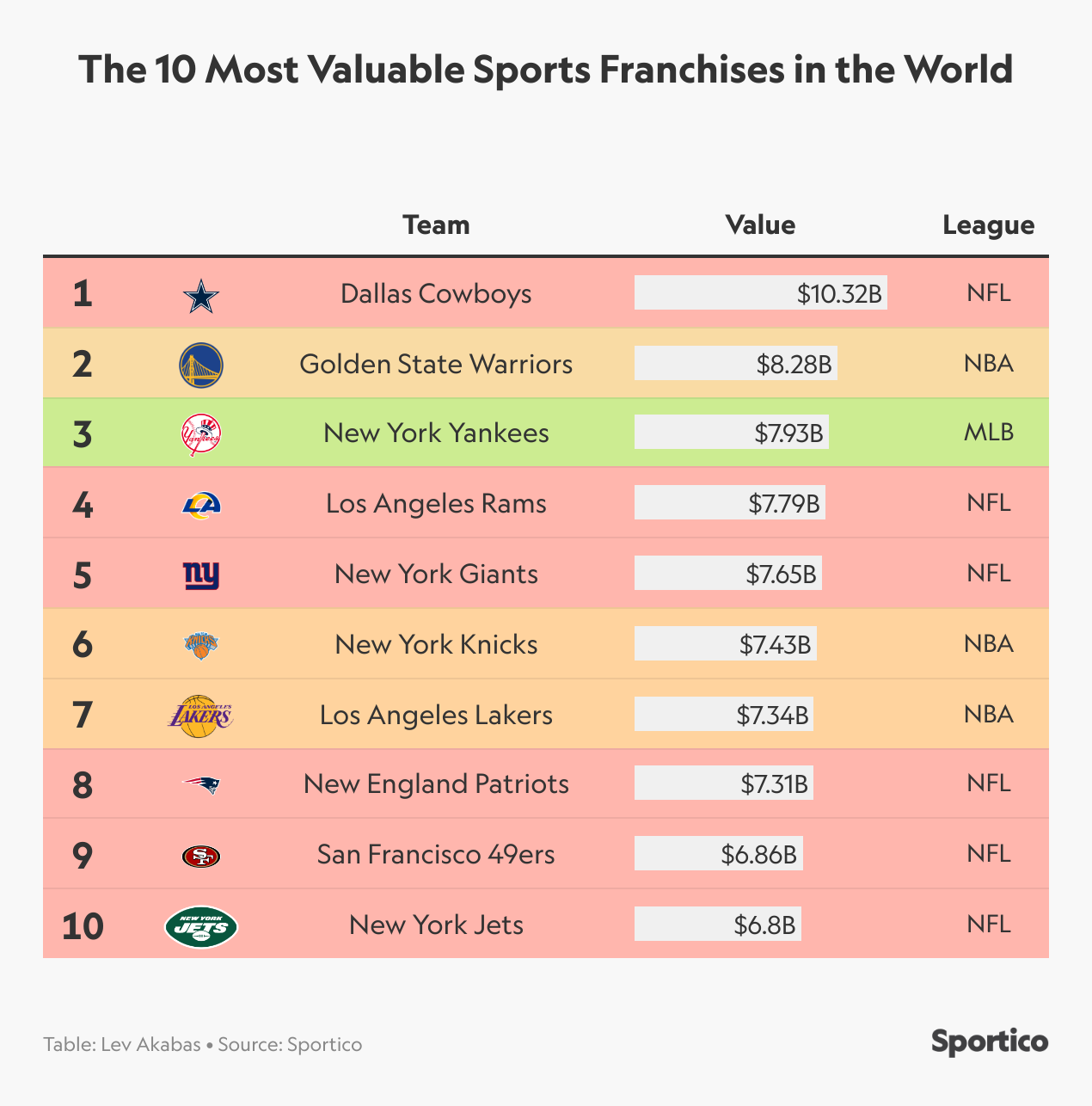 I’m thinking about that this week because Sportico just published its latest NFL valuations, and for the first time, there’s a U.S. sports team worth more than $10 billion. And yes, that team is the Dallas Cowboys. It might not have happened on Jones’ timeline, but what looked insane six years ago now feels like an inevitable milestone in a multi-decade sports bull market.