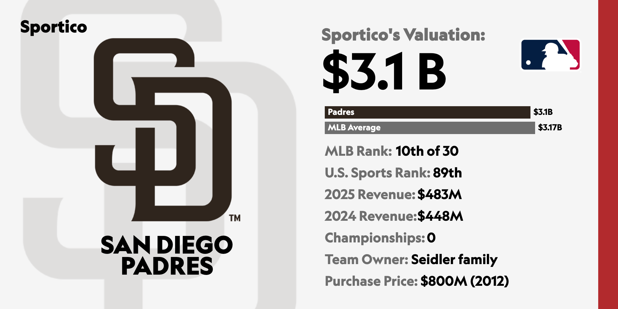 What I Do Understand ⚾: The Padres are about to sell for $3.9 billion, the highest price (by far) ever paid for control of a baseball team5. Why are the Padres worth $3.9 billion?? There are a few things that make the club a bit of a unicorn in major U.S. sports. It’s a rare baseball team that has neither an NFL nor NBA franchise in its city, and it is profitable despite losing its local TV partner to bankruptcy. The Padres were second in attendance last year, trailing only their big-spending blue rivals to the north. Plus, the looming labor battle could bring an MLB salary cap, which would make every team worth a lot more. Read more here from our colleagues Kurt and Justin 👇