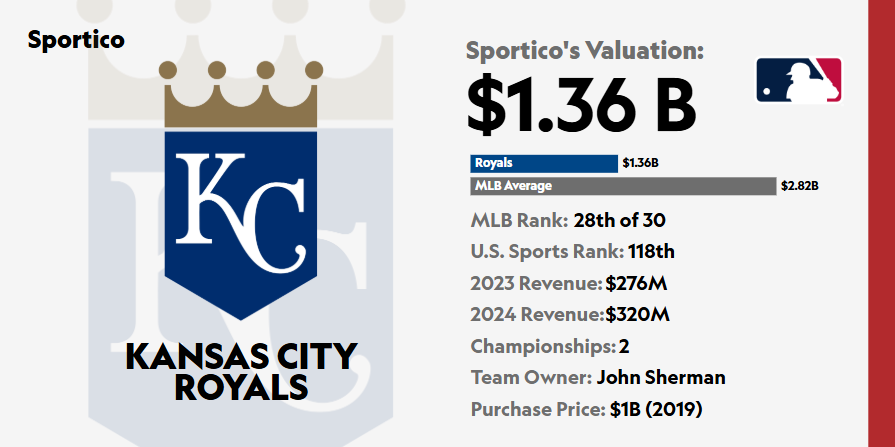 In addition to helping the team on the field, the Royals’ move will add about 230 seats in Kaufman’s left and right field seating areas4. If we assume for a moment that those tickets cost $80 each, that’s an additional $1.5 million in sales annually for the team (before accounting for the extra beer volume). For reference, Royals revenue in 2024 was $320 million.