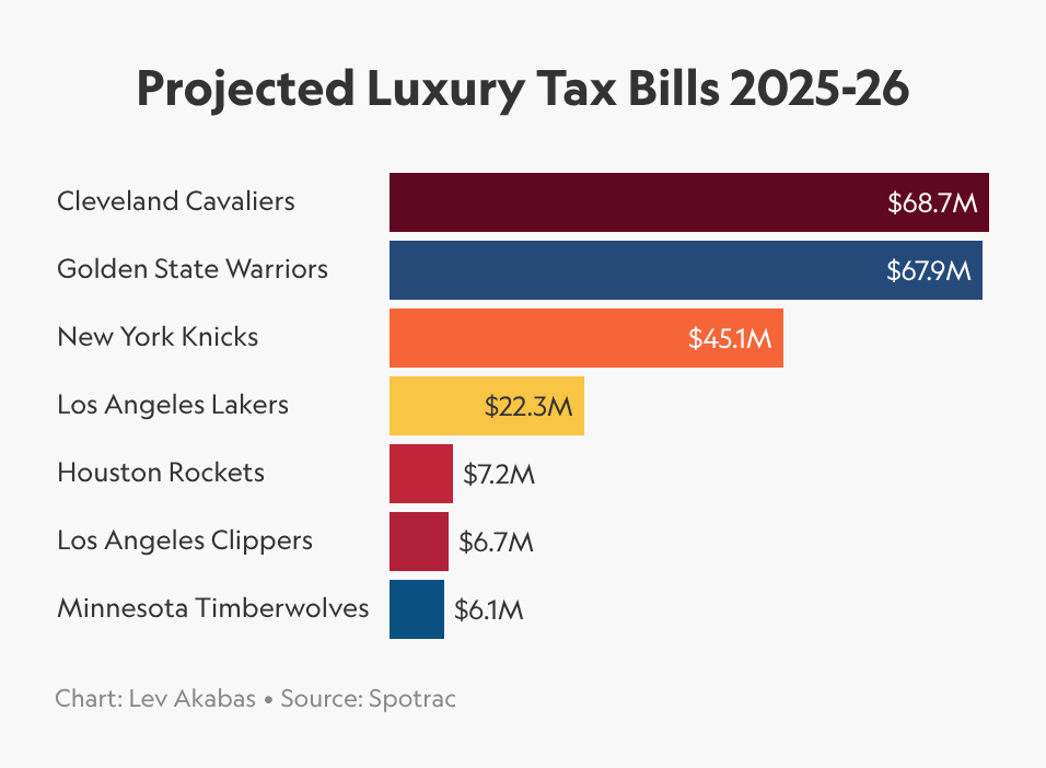 The team with the highest payroll this season is… Cleveland??? Since the Warriors won the title in 2022, the teams that have paid the most money for their rosters have been underwhelming on the court, to say the least: the 2023 Clippers (lost 4-1 in the first round), 2024 Warriors (missed postseason), and 2025 Suns (missed postseason).
