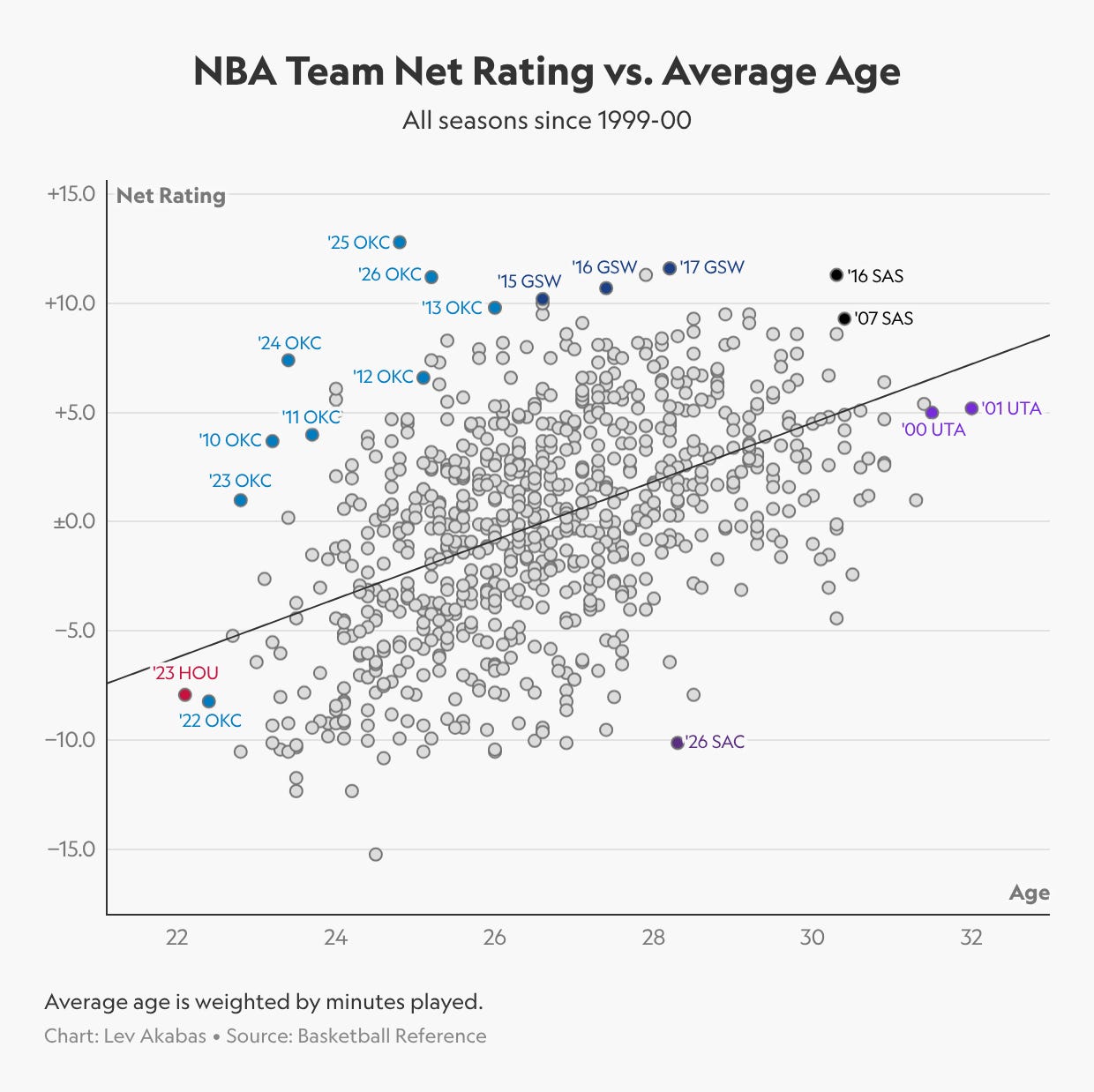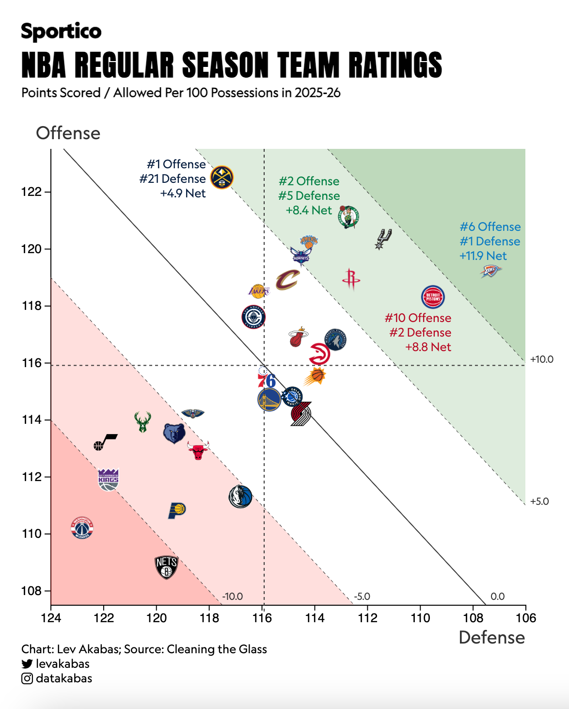 The Thunder just posted the eighth-best regular season net rating in NBA history despite MVP Shai Gilgeous-Alexander missing 14 games and starters Jalen Williams and Isaiah Hartenstein missing about half the season. When it comes to roster building, there is basically OKC, and then there are 29 other franchises.