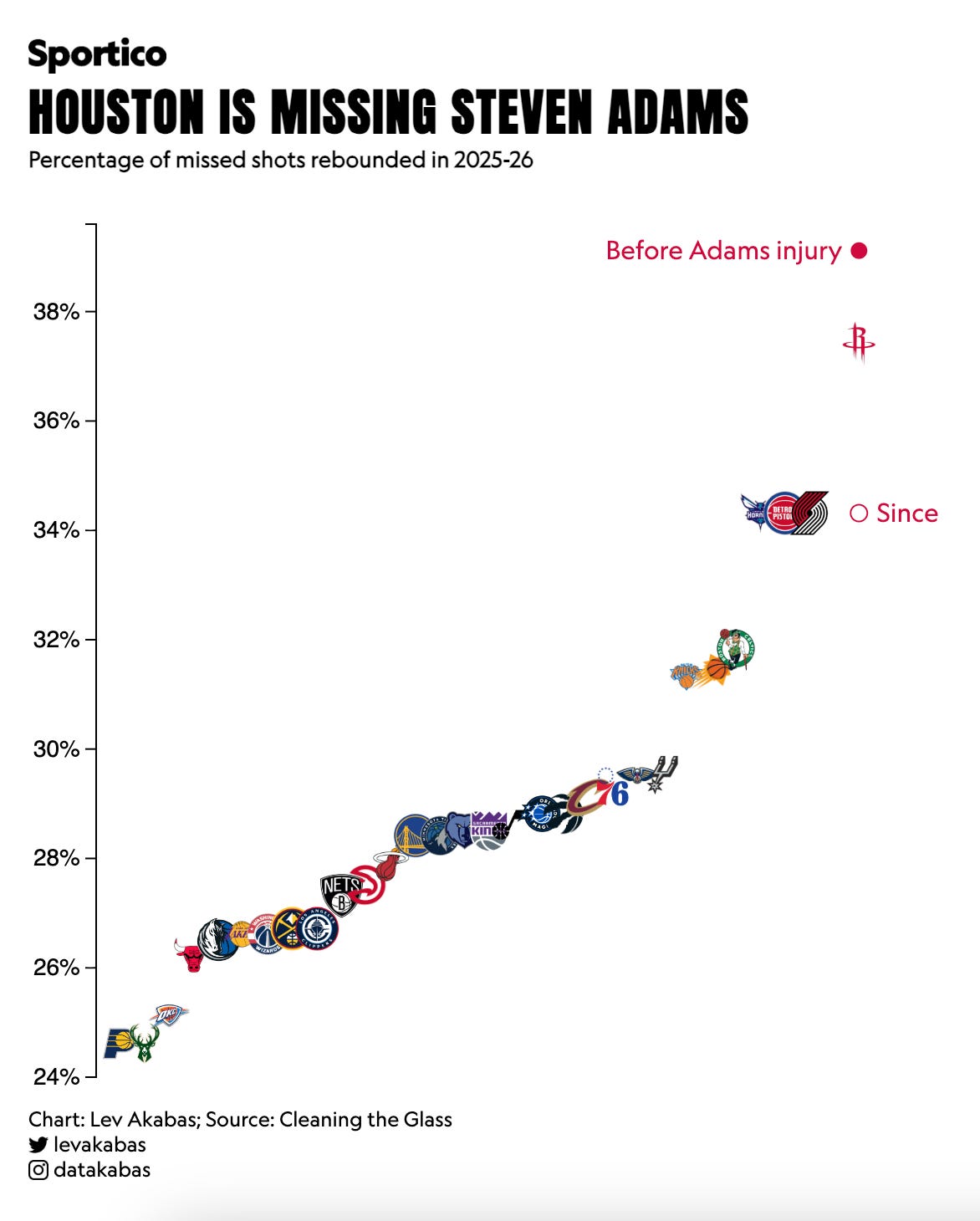 The Rockets finished the season as a historically great offensive rebounding team, but they have been much less dominant in that department since losing Steven Adams to a season-ending injury in January.