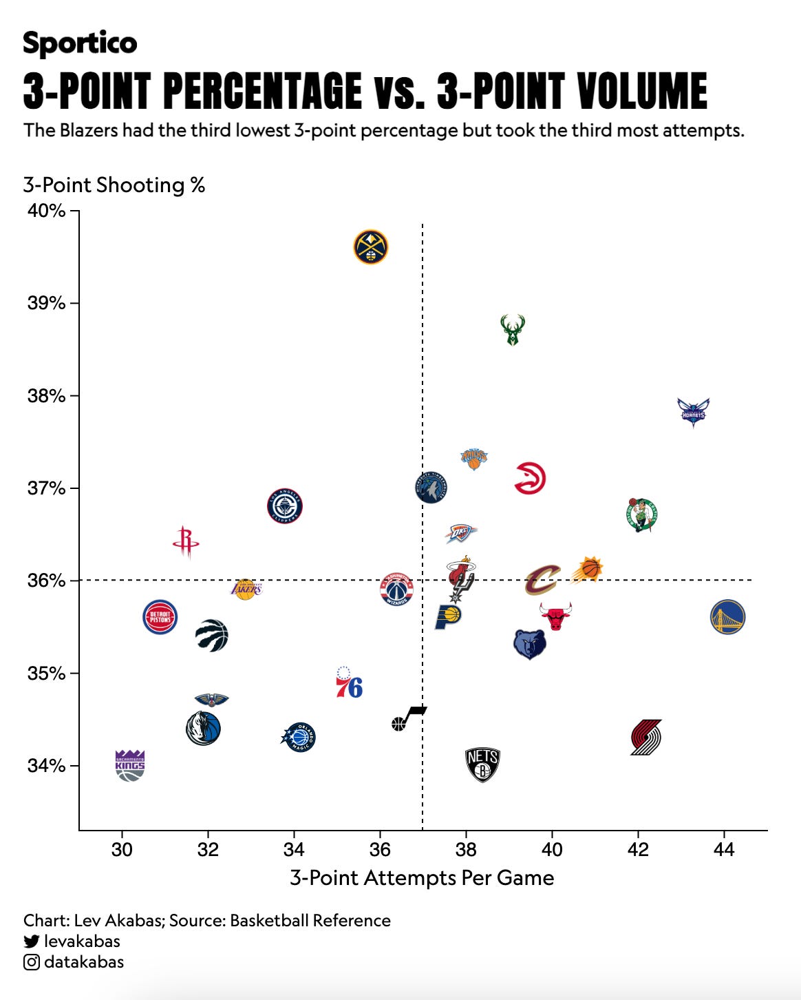 Despite injuries to several starters, the Nuggets easily finished the season with the league’s best offense, but they ranked just 21st in defense. Only one team has ever won the title with a below-average defense: the 2001 Lakers, who also ranked 21st. The next worst defense to win a championship? The 2023 Nuggets.