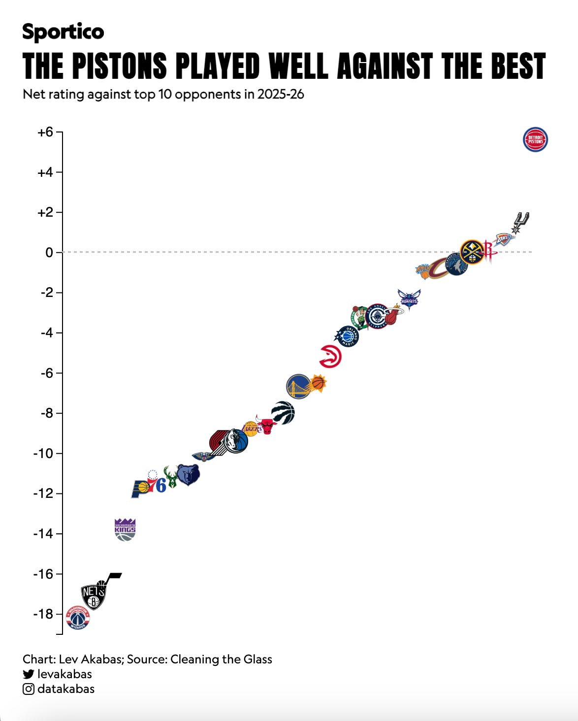There is a narrative out there that the Pistons are untested and can’t compete with the best teams, but they were actually 17-7 against top 10 opponents. That includes a 3-1 record versus Boston and a 3-0 record versus New York.