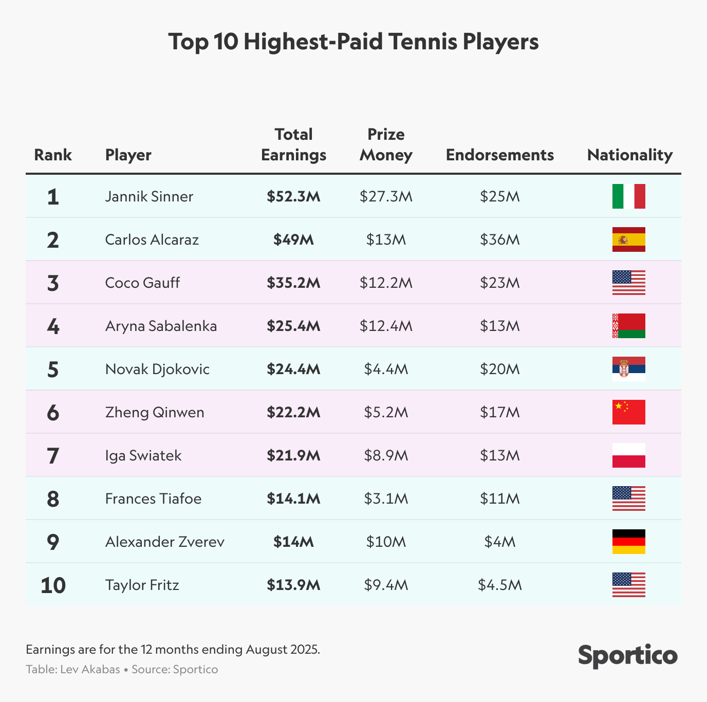 On the most recent Sporticast episode, Jacob joined Scott and Kurt to talk more tennis, with a look at the sport’s highest individual earners.