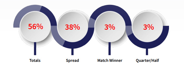 Sportradar is the official monitoring partner of the NCAA but does not break out any data by college or pro. It does show what types of basketball markets are most likely to be flagged for irregularities.